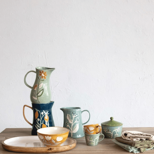 Hand-Painted Stoneware Canister w/ Wax Relief Flowers