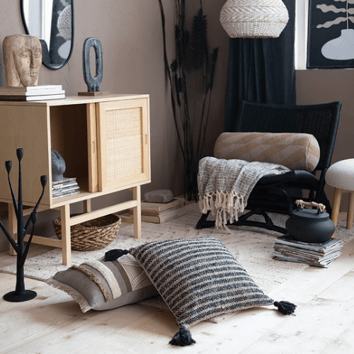 Woven Cotton Pillow w/ Stripes & Tassels, Polyester Fill 18"