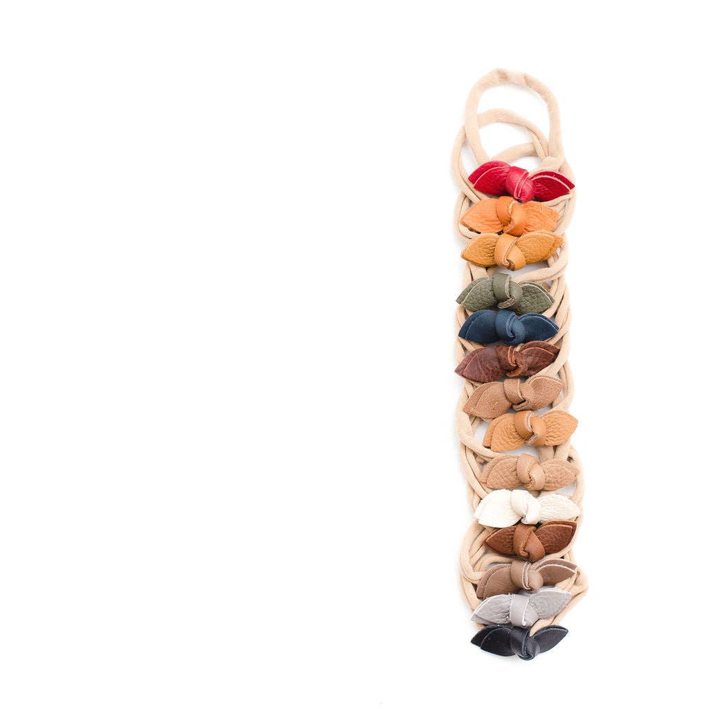 Baby, Toddler and KidsKNotted Bow Leather headband fits great and looks super cute and adorable! Bows measure approximately 2.75" . Nylon headband is super stretchy so fits lots of head sizes from newborns up to adult .